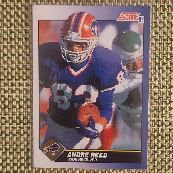 Andre Reed Score 91 football card featuring a vibrant action shot. Perfect for collectors.