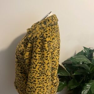 Andrée by unit jacket woman cheetah animal collar zip yellow mustard black Sz L