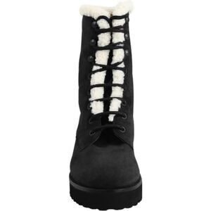 Plush faux-shearling peeks out from the shaft of a cozy, water-resistant lace-up boot set on a lug sole.
