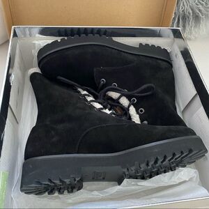 Leather and synthetic faux-shearling upper/textile lining/synthetic sole