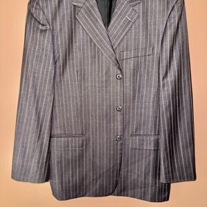 Andre Lanzino Men's Wool Blend Blazer Sport Coat Jacket Black Pinstripe 44R