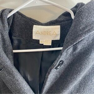 Andrea 100% Wool Hooded Maxi Trench Pea Coat Sz 16 Button Down Jacket