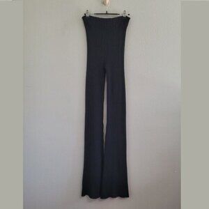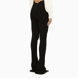 Flared ribbed knit pants with an elastic waistband and cut-out details.