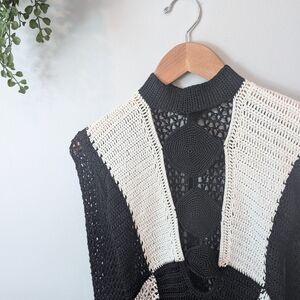Andrea Almeida Black And White Crochet Greta Mini Dress Xs