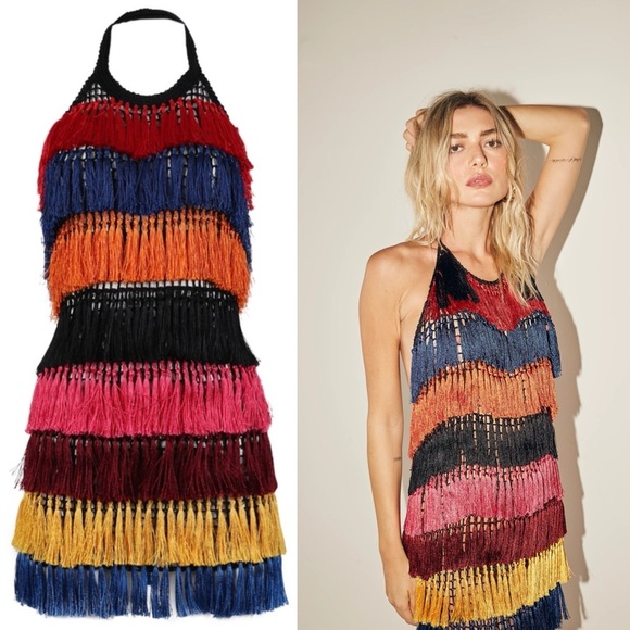 Andrea Almeida Hand Made Fringe Tassel Zendaya Mini Dress