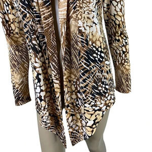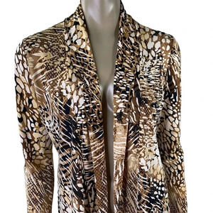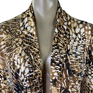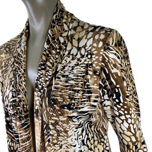 Andrea Behar Animal Print Open Cardigan Jersey Knit Blazer Women Size M Brown