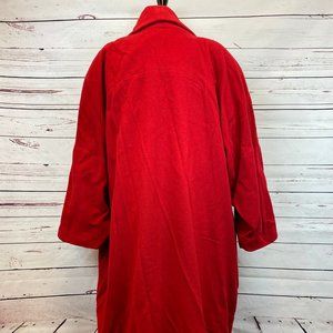 A great Andrea Behar long red overcoat jacket in awesome condition. No rips, tears, or stains. Actual Item Pictured, Sold as is. Any questions please ask. Measurements below are as close to accurate as I can get from measuring them since some materials are stretchy or slick, all sizes are from tags.