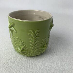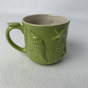 Andrea By Sadek Coffee Mug and Saucer Green Seashell Pattern Ceramic Nautical.