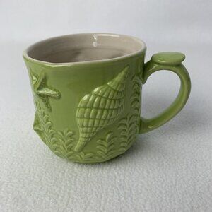 Andrea By Sadek Coffee Mug and Saucer Green Seashell Pattern Ceramic Nautical