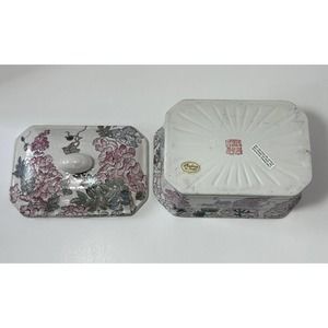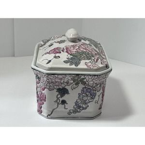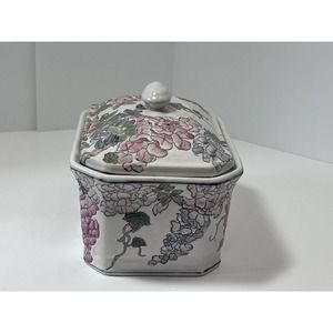 Andrea By Sadek Hand Painted Flowers Porcelain Box With Lid Made In China
