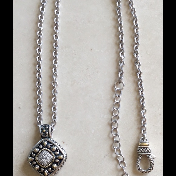 Authentic vintage Andrea Candella necklace embellished with 18 karat gold and pave diamonds.The length is 16 inches adjustable to 20 inch. Necklace is mint condition (no missing stones) and it also has a tiny logo circle near the clasp. Can bundle with matching ring for a better price.