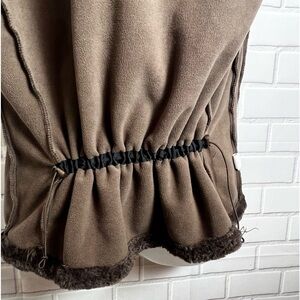 Elevate your winter wardrobe with this stylish Andrea Faye brown fur vest. Made in the USA with high-quality faux fur, this mid-length vest is perfect for travel and casual occasions.