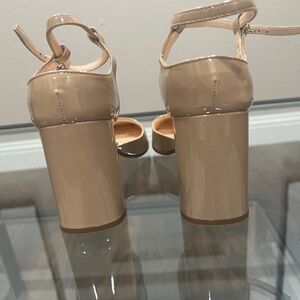 Nude patent leather. Worn once. Great shoe for work and Spring/Summer events! Comes with dust bag and box.