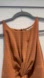 Chic caramel jumpsuit with twist front design. Flattering and stylish for any event.