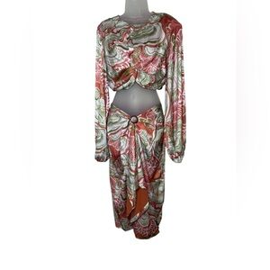Andrea Iyamah Behati Mushroom Print 2 Piece Set Skirt & Crop Top M NWT