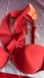 Chic red bikini with unique asymmetrical ruffle. Stylish one-shoulder design. Perfect for a bold look.