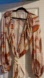 Elegant long sleeve dress with floral pattern. Features cream and orange tones. Perfect for any occasion.