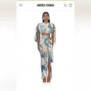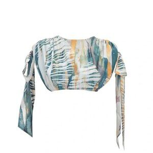 Key words: statement crop top, abstract print top, colorful blouse, voluminous sleeve top, resort wear, designer crop top, Andrea Iyamah top, vacation outfit, spring summer blouse, contemporary fashion, festival style