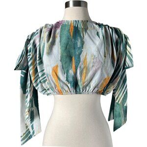 Andrea Iyamah Halima Crop Top Multicolor Abstract Print Top XS