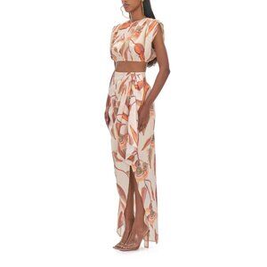 Andrea Iyamah Halima Cropped Top Rust and Cream Abstract Print Size S
