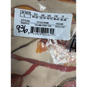 The fully lined Andrea Iyamah HALIMA cropped top with a back keyhole closure uniquely plays with proportion. With its elastic hem, drawstring shoulder, and removable bows this top lets you control the amount of coverage you want. The hand-painted Eucalyptus Leaf print was inspired by the Eucalyptus Tree native to Australia. Its spear like leaves and unique flower are breathtaking. 100% polyester. Size small; approx 18" from shoulder to Care Instructions: Hand wash cold + Line Dry.