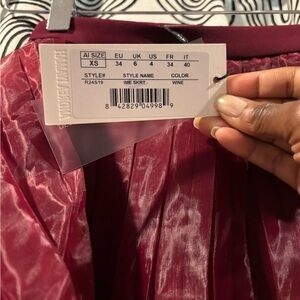 Step out in style with this elegant burgundy pleated skirt. Perfect for any occasion, this skirt adds a touch of sophistication to your wardrobe.