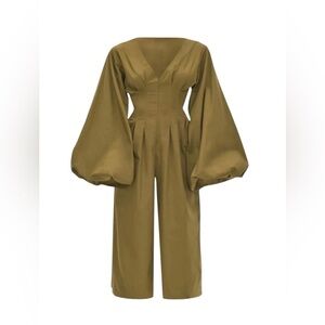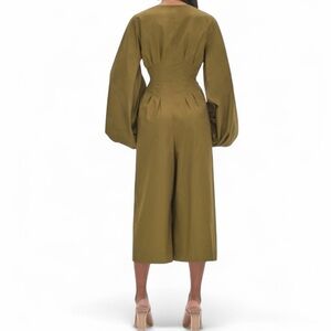 Andrea Iyamah Jumpsuit Cotton Poplin Small Olive Green Bubble Hem Sleeves Fall