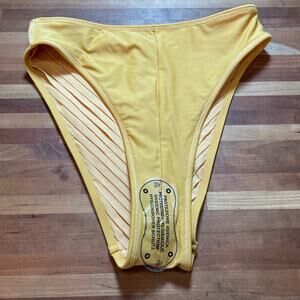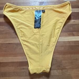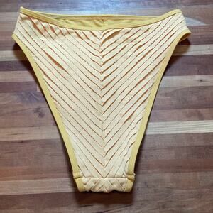Andrea Iyamah Pura Pleated High Rise Bikini Bottom Mustard, Small retail $160