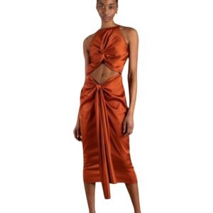 Twist detail at front bust, cutout at front waist, self tie at front waist