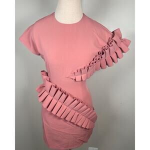 Andrea Iyamah Safia Pleated Ruffle Pink Mini Dress Size Small