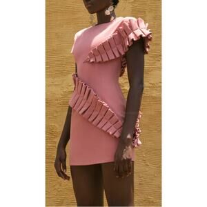 Andrea Iyamah Safia Pleated Ruffle Pink Mini Dress Size Small is brand new with tag! Sold out everywhere and one of the brands signature styles!