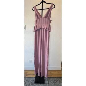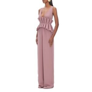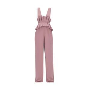 This jumpsuit is detailed with pleated fabric flaring out around the waistline.