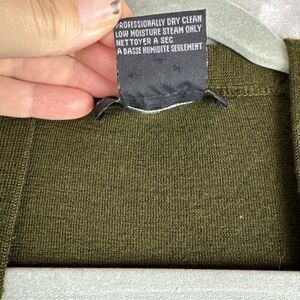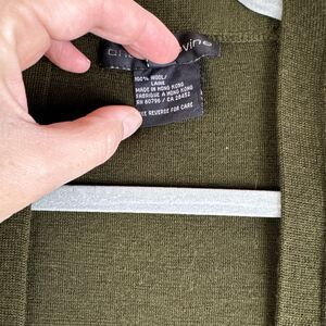 ~ Solid dark olive green, open in front- no button or closure. No pockets. Dolman style (batwing) sleeve.
