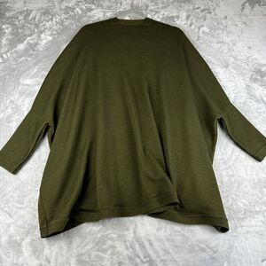 Andrea Jovine 100% Wool Cardigan ONE SIZE Dark Green Drop Shoulder Slouchy(0995)