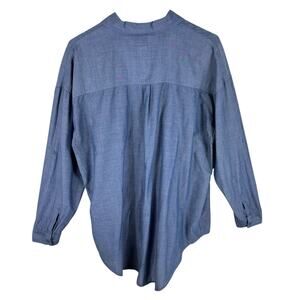 Excellent preowned condition. Blue woven lightweight long roll tab sleeve collared button up shirt. Double button on cuffs. Buttoned pocket on left chest. 100% cotton material. Approx. measurements: Shoulder to hem 29", pit to pit 25", sleeve from neck to sleeve hem 30". Size L.