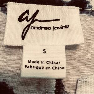 Andrea Jovine Tye-Dye Linen Top Navy Blue/White Size Small Boho hippie chic