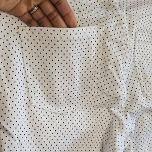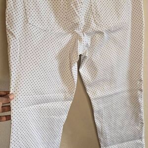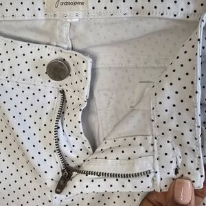Add a pop of playful style to your wardrobe with these Andrea Jovine Polka Dot Skinny Jeans in crisp white with black dots — women’s size 8.