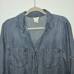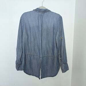Andrea Jovine Women Tencel Lyocell Chambray Button Shirt Size M Blue Denim Tunic