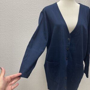 Andrea Jovine Womens Plus 1X Open Front Cardigan Navy Blue Lightweight Stretch