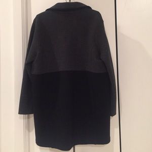 Very stylish Andrea Jovine two toned jacket. Has two side pockets. Pair it with skinny leggings and a bootie!!! Very roomy for a petite.