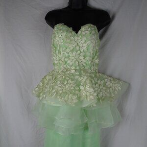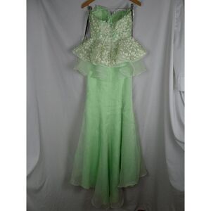 Andrea & Leo Couture Green Dress Size 6. Dress come with detachable straps. Loose seam on left side of dress shown in picture. Please check measurements for the perfect fit.