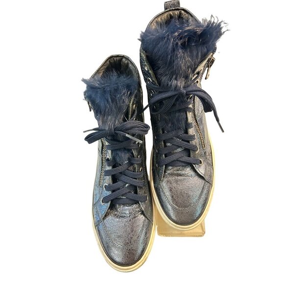 Andrea Pisani High-Top Faux Fur Sneakers With Side Zippers & Laces 39 US 9