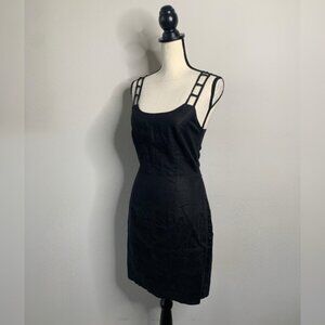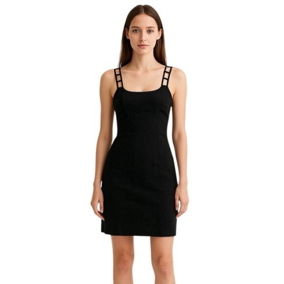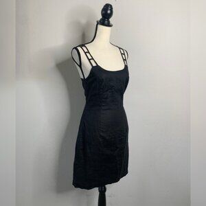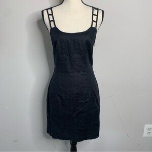 Andrea Polizzi for Rex Lester Black Linen Strappy Cutout Crisscross Mini Dress