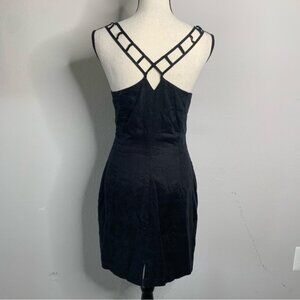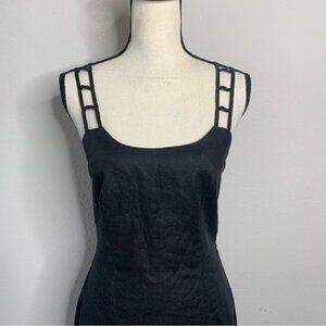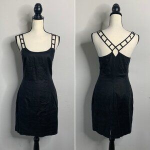 Andrea Polizzi for Rex Lester Black Linen Strappy Cutout Crisscross Back Mini Dress