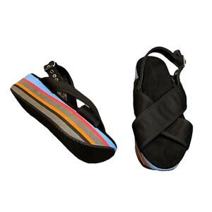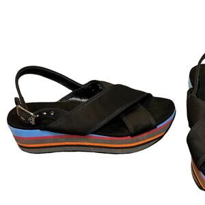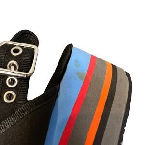 Condition: see photos of the damage on the platform in multiple areas. Also the sole is a little loose on the bottom and on the top back of the left shoe. Pre-owned.