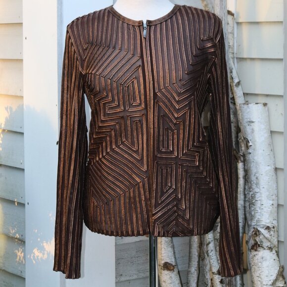 Andrea Rosati Brown Faux Leather Cut Out w Mesh Geometric Pattern Jacket Sz 8