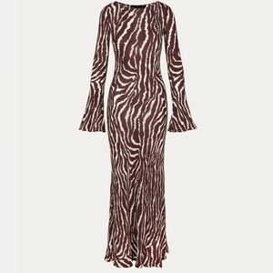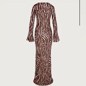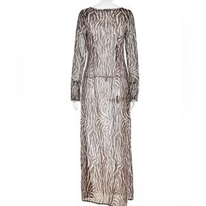 Andrea Sexy Zebra Print Long Sleeves See Through Maxi Dress