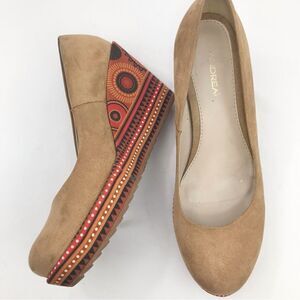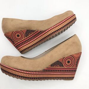 Andrea Tan Suede Tribal Design Slip on Platform Wedge Heel Shoes