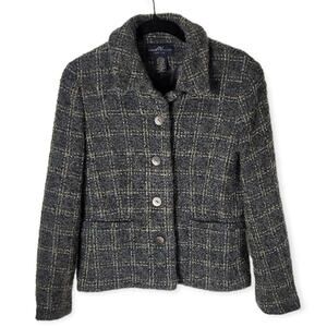 Andrea Viccaro Gray Wool Blend Grid Plaid Button Down Blazer Size 6 Petite