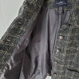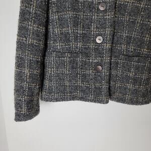 Andrea Viccaro Gray Wool Blend Grid Button Down Blazer Size 6 Petite Career